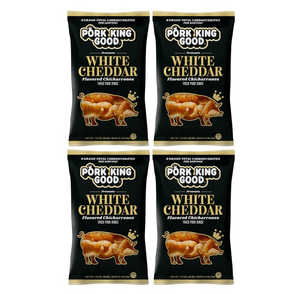 Pork King Good White Cheddar Flavored Pork Rinds Chicharrones 4 Pack Keto Snacks