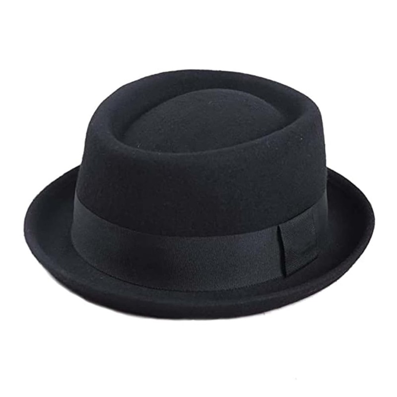 Pork Pie Hat Breaking Bad Hats Porkpie Hats Wool Felt Heisenberg Hat Mens Brimmed Hats Fedora, Black, Medium