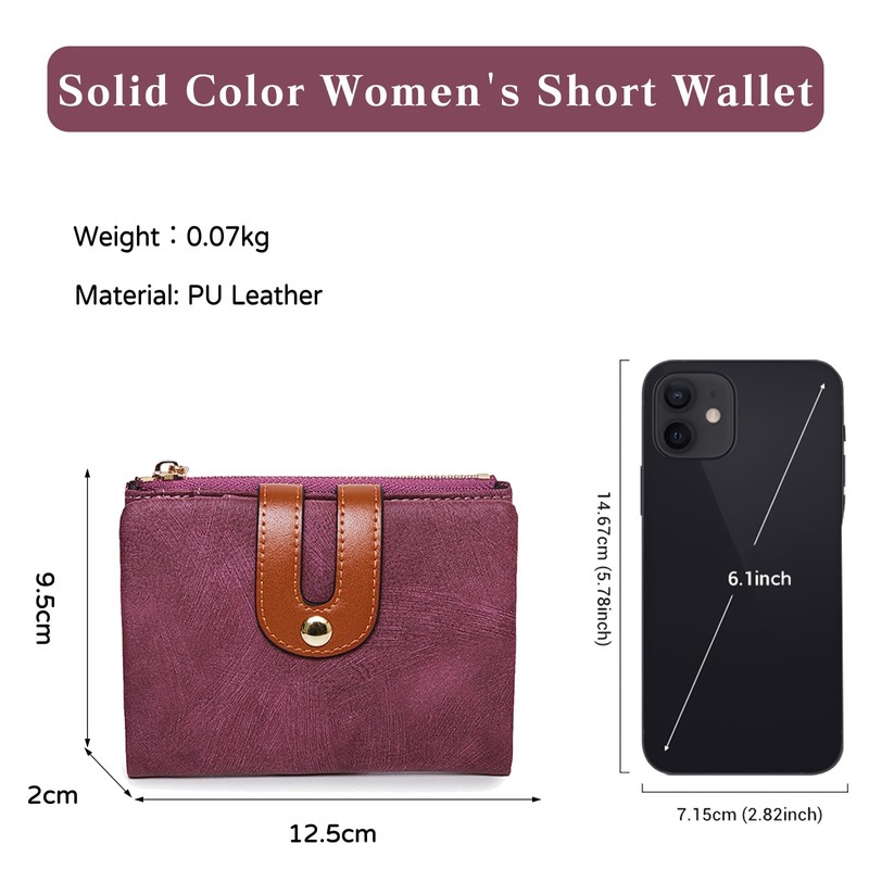 PORRASSO Fashion Wallet Ladies Purse Women's PU Leather Wallet Bi-fold Change Pouch with 8 Card Slots Purple