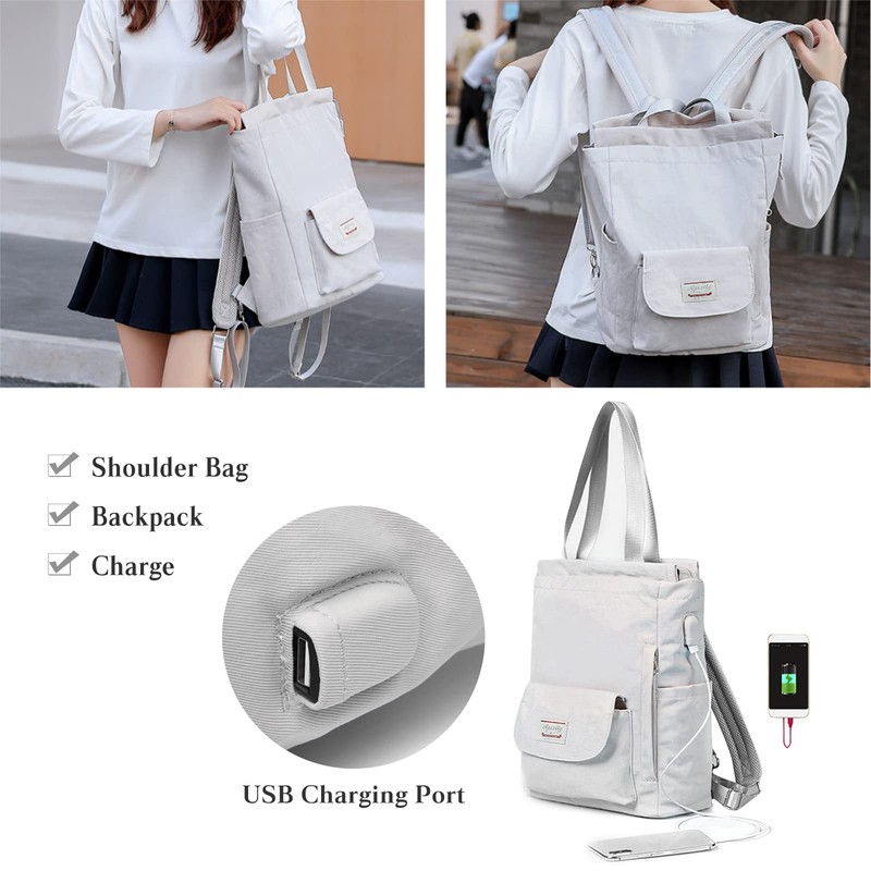 - ★Unique Design: With a USB charging port extended on the side of the backpack and built-in a charging cable inside (Power bank is not included). This USB backpack offers you a more convenient way to charge your phone on the road. With a luggage strap on the back, backpack can be fixed to the suitcase, which is very convenient to use when business trip or traveling.