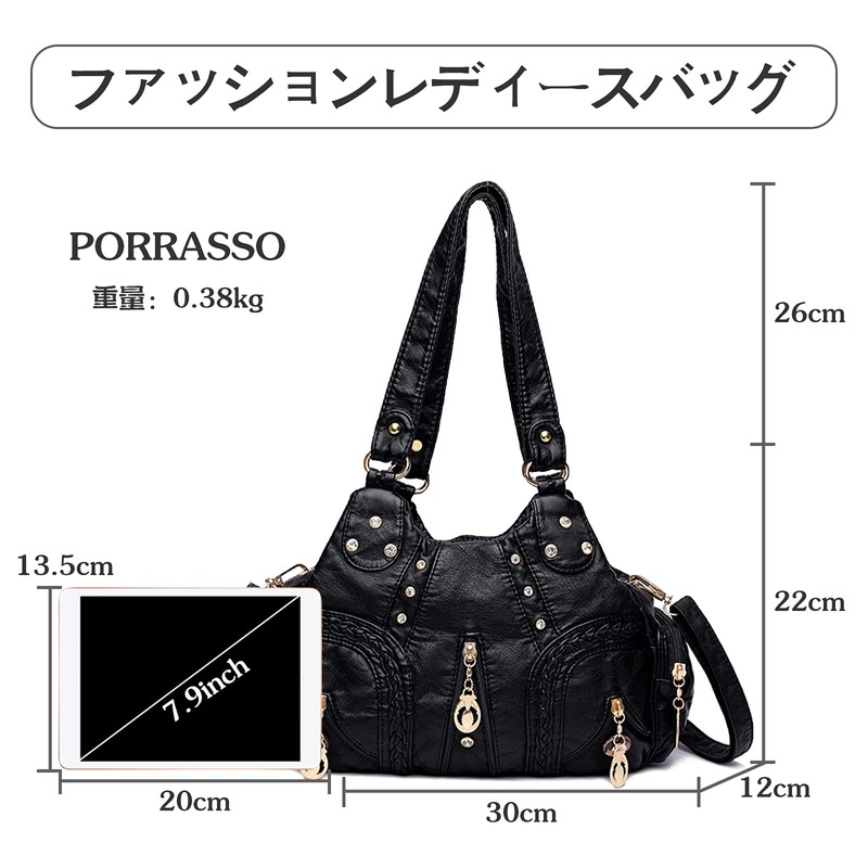 PORRASSO Women's Handbag, Shoulder Bag, Crossbody Bag, 3-Way, Large Capacity, Tote Bag, Shoulder Bag, PU Leather, Popular, Business, Travel, Work, Commuting to Work, Black