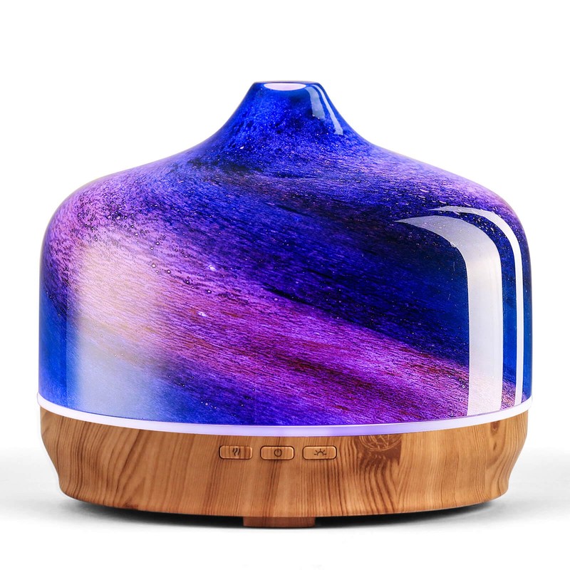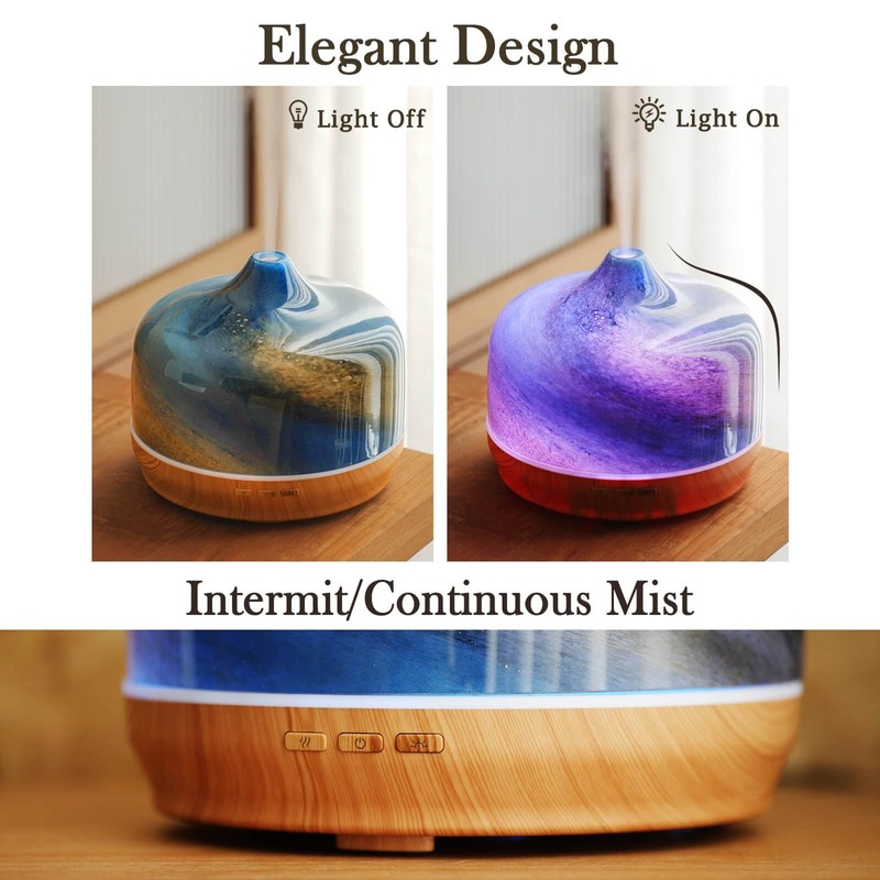 - UNIQUE ART DECOR - 500ml glass essential oil diffuser with star-shaped glass cover & wood grain base. Adds artistic harmony to your living space, perfect for bedrooms, living rooms, kids' rooms, studies, offices, & yoga studios. Enhances ambience