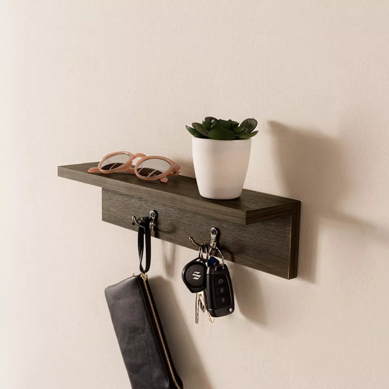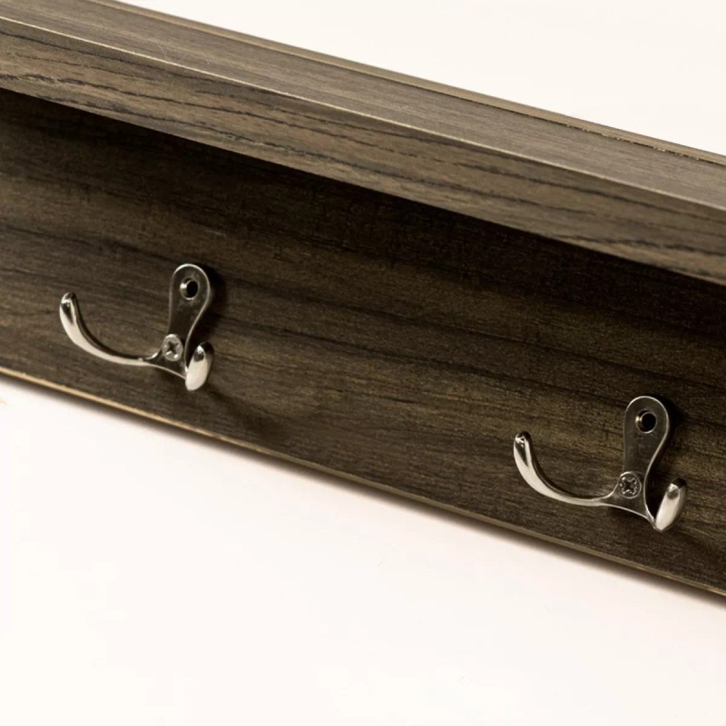 Perchero con 2 ganchos en color nogal británico que podrás utilizar en distintas partes de tu hogar