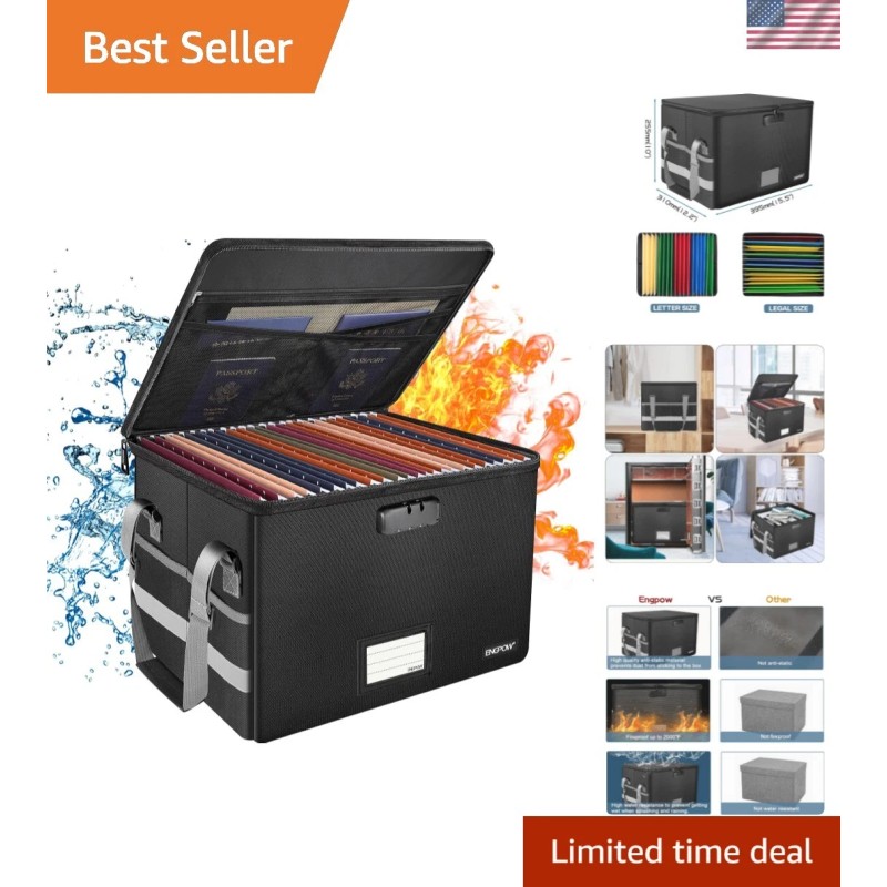 Portable 15.55" Fireproof Document Box with Zipper - Elegant Safety Organizer