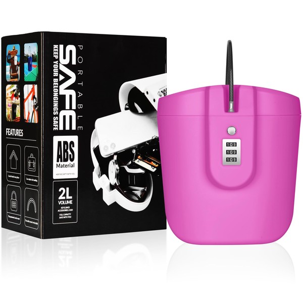 Portable Anti-Theft Lock Box, Portable Security Lock Bag, Mobile Travel Safe & Beach Safe with Numbers to Keep Your Valuables Temporarily Secure. (Rose Red)