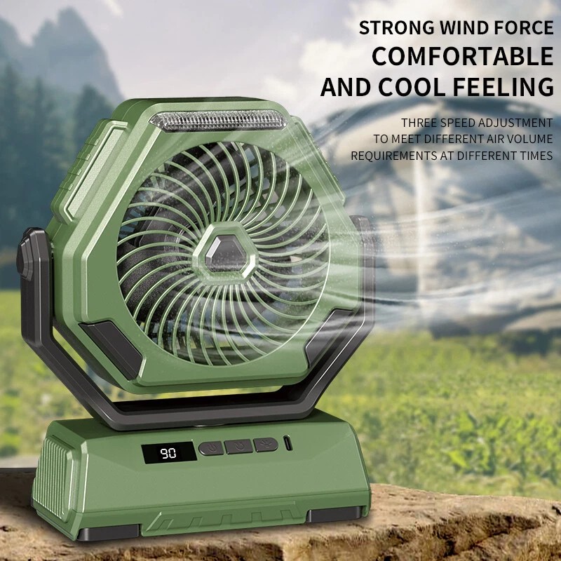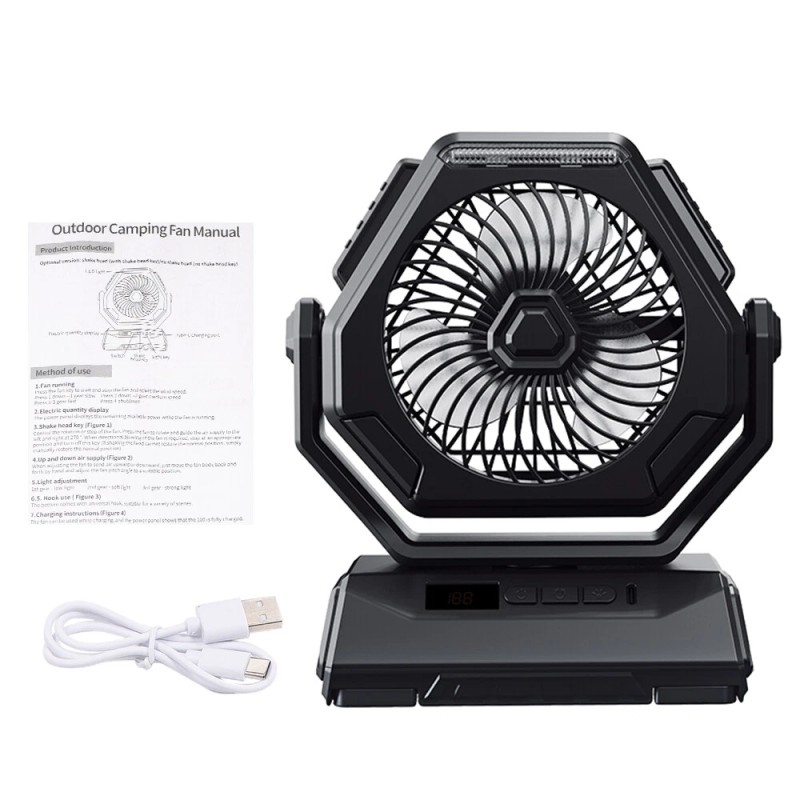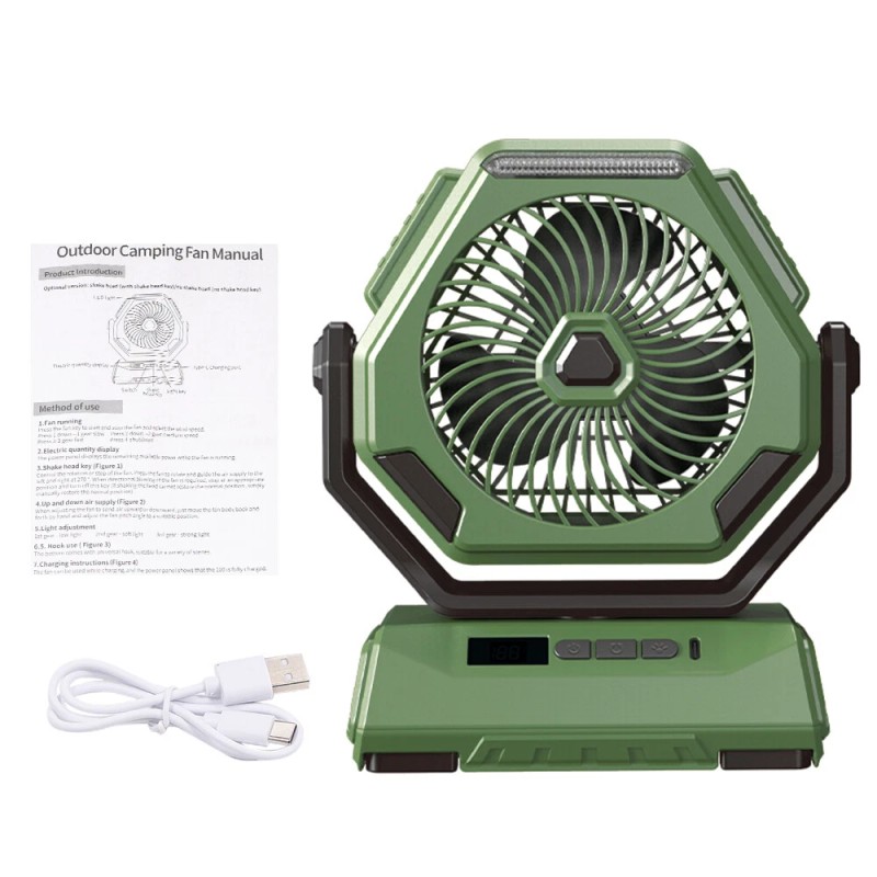 Portable Battery Powered Fan USB Rechargeable Camping Tent Fan with LED Light