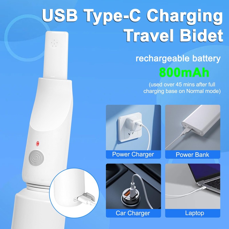 - 【Rechargeable & IPX7 Waterproof】 Unlike conventional battery-operated models, our peri bottle is equipped with a large 800 mAh rechargeable battery and a type C USB cable, it can be used over 45 mins after full charging base on Normal mode. It has an IPX7 waterproof rating and can be soaked in 3 feet of water for 30 minutes. The bidet automatically shuts off when the water supply is depleted, ensuring safty, efficiency and convenience.