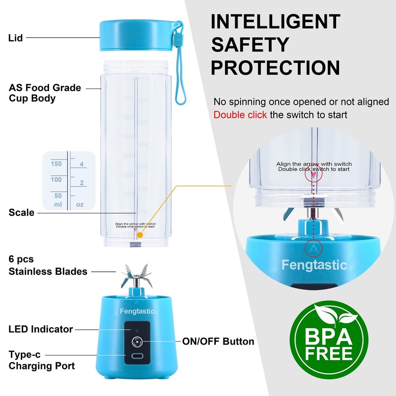 - 6 BLADES & STRONG POWER - The portable blenders for making smoothies have 6 stainless steel blades and strong power, suit for juices, light shakes, smoothies etc. The cup body is made from BPA-free food-grade material, safe to use.