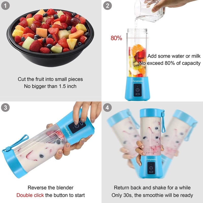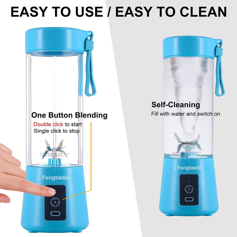 - EASY TO USE & CLEAN - The mini blender portable has only one button, easy to use. Double click to start, single click to stop. It’s easy to clean, just add some water and run your blender until it is clean.