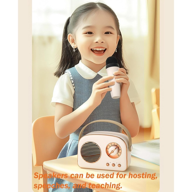 Portable Bluetooth Speaker with Microphone Set,Retro Bluetooth Speaker with Home Karaoke Machine,Portable Handheld Karaoke Mics Speaker for Kids and Adults Home Party Sing and Music (Pink)