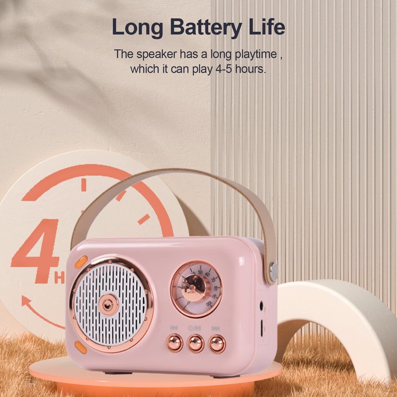 - 【Classic Retro Design】Combining vintage elegant and lovely pink appearance vintage decor, it uses the the latest and best digital audio technology to take you back to 1960s and nostalgic memories of the past. The specially designed vintage bluetooth speaker differentiates you from common music lovers with it's unique retro appearance. It is not only a high-quality retro bluetooth speaker,a microphone speaker,but also a perfect christmas decorations that can show your taste very well.