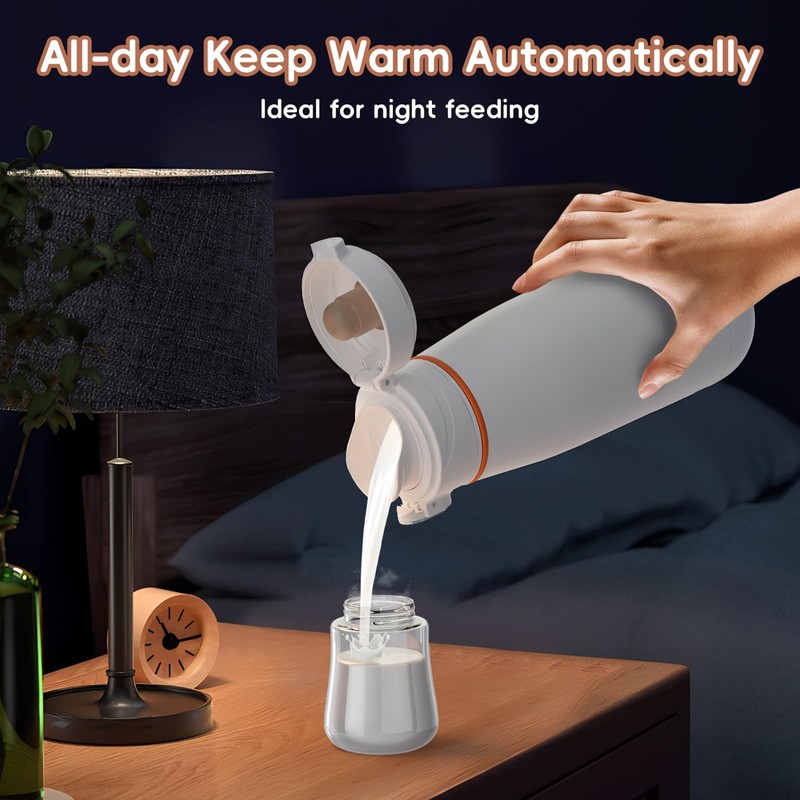 - Travel Easily: Portable bottle warmer is suitable for travel, it is only 3.07in x 9.05in,0.67kg. the baby bottle warmer is designed for travel. Portable bottle warmer for travel with a 380ml capacity, it fits easily in your bag or stroller. It’s perfect for families on the move—ideal for home, camping, road trips, or flights. 6 hours of keep warm functionality for fast feedings anywhere