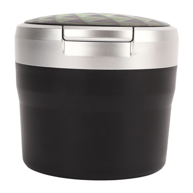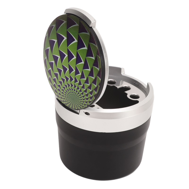 Portable Car Ashtray Mini Silver Edge Fire Prevention Smokeless Auto Ashtray with LED Light and Lid Green Print