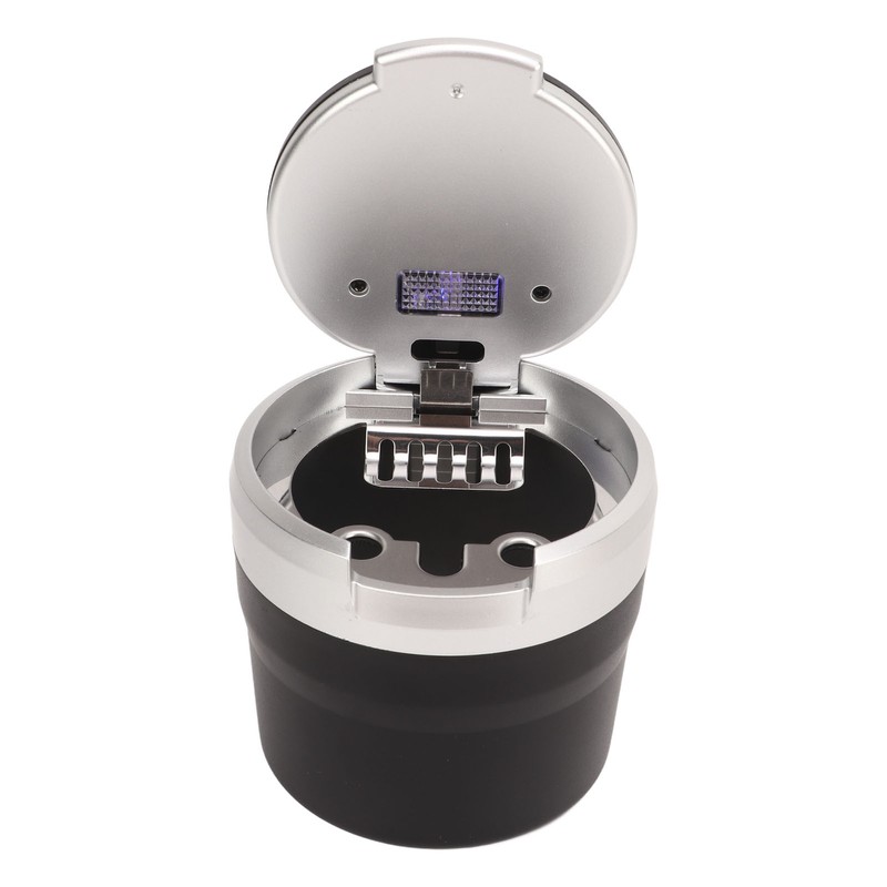 1、SMOKELESS: Car ashtray allows you to create a "smoke free zone" while you smoke. You can enjoy your cigarettes in your car, home or office without the strong after smell. 2、WITH SMOKE DIFFUSER: Portable car ashtray comes with a smoke diffuser. The lid closes securely to prevent odors from spreading or subsequently spreading. 3、WITH COOL BLUE LED: Auto ashtray features a cool blue LED with LED lights for added night vision, allowing you to easily get to the ashtray visually. 4、FIRE RESISTANT MATERIAL: Smokeless car ashtray is made of fire resistant material with smoking holes. Built in button battery, replaceable. 5、EASY TO USE: When the lid is opened to 90 degrees, the light will automatically turn on, close the lid light can be extinguished.