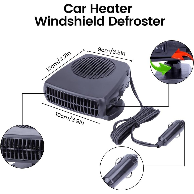 - 【High Quality】 Portable car heater adopts ABS material, high heat conversion, no open fire, safe and instant heating. Cigarette lighter plug is built with fuse for safety use, providing auto power off protection.
