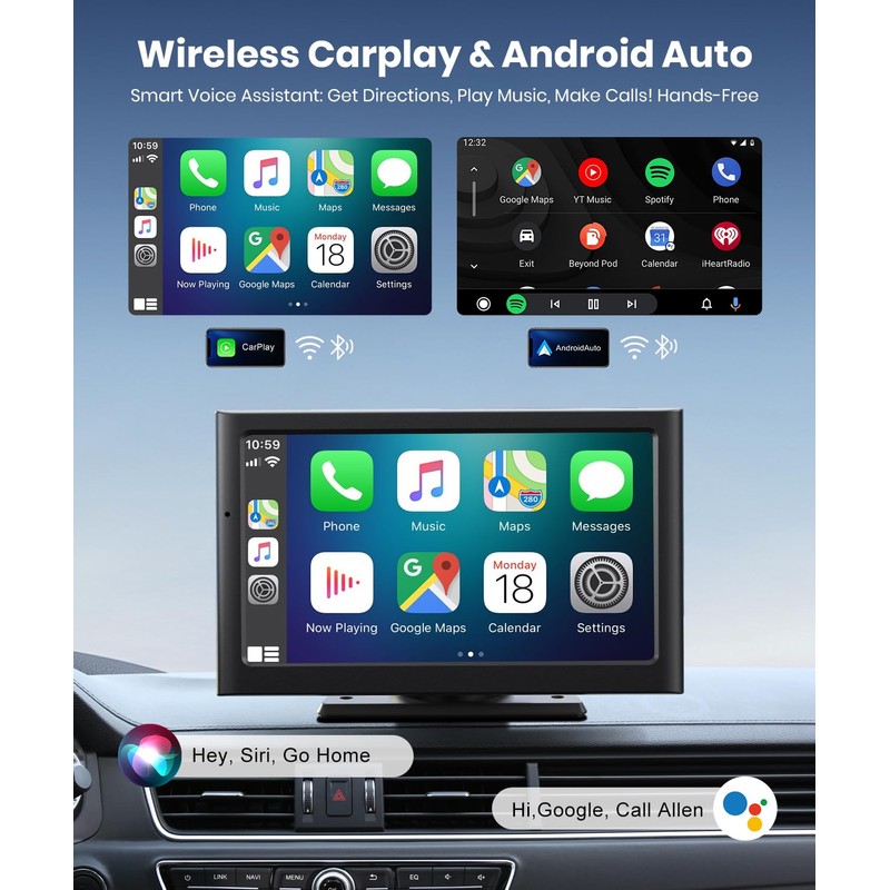 Wireless Carplay Transform your driving with this 7-inch wireless Apple CarPlay & Android Auto screen - the ultimate upgrade for vehicles lacking factory systems. Featuring voice-controlled navigation via Siri/Google Assistant, the IPS HD touchscreen delivers razor-sharp 1080P mirroring of maps, calls, and streaming apps. Unlike bulky car stereos, our plug-and-play car display installs in 3 steps: plug into cigarette lighter, mount with anti-shake bracket, and connect via Bluetooth 5.0. Perfect solution for 2005-2018 cars without CarPlay.