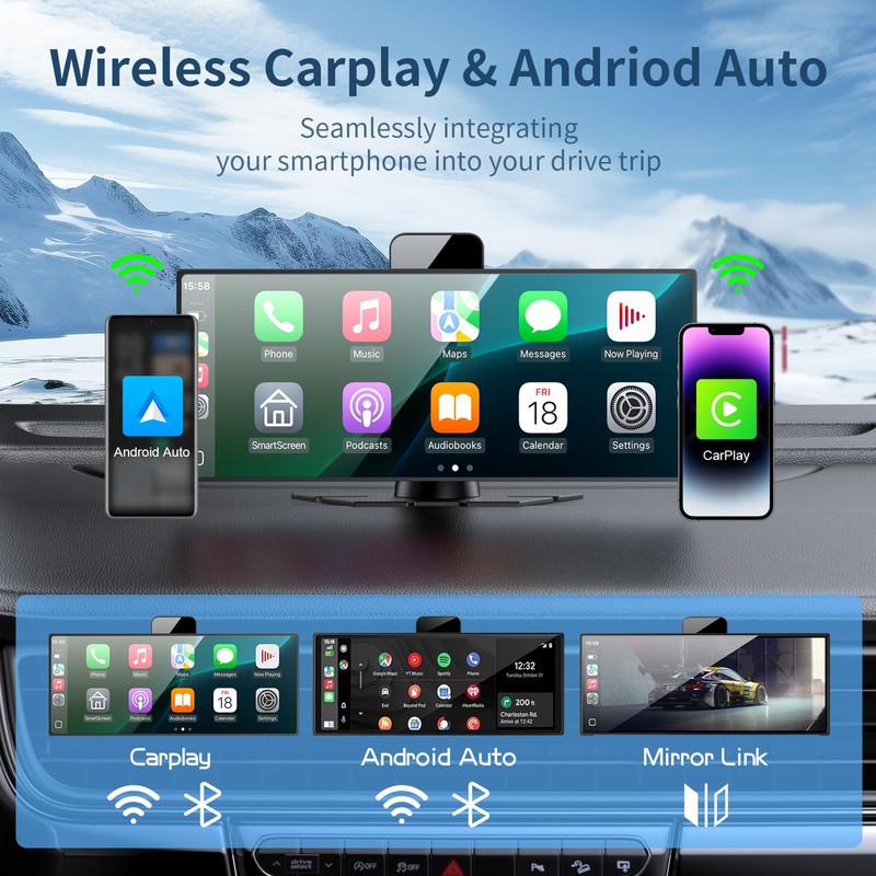 - Android Auto Screen & 10.26-Inch Wireless CarPlay - Hotnueout car play screen supports wireless connections, allowing you to connect your smartphone via Bluetooth and WiFi without needing to download additional software. Even if your car is very old, seamlessly integrate Apple CarPlay and Android Auto into this 10.26-inch smart screen for car for hands-free access to maps, music, calls, and more, your smartphone into your drive trip
