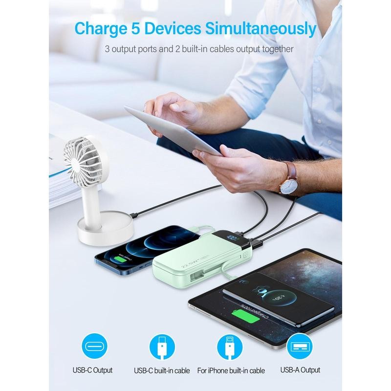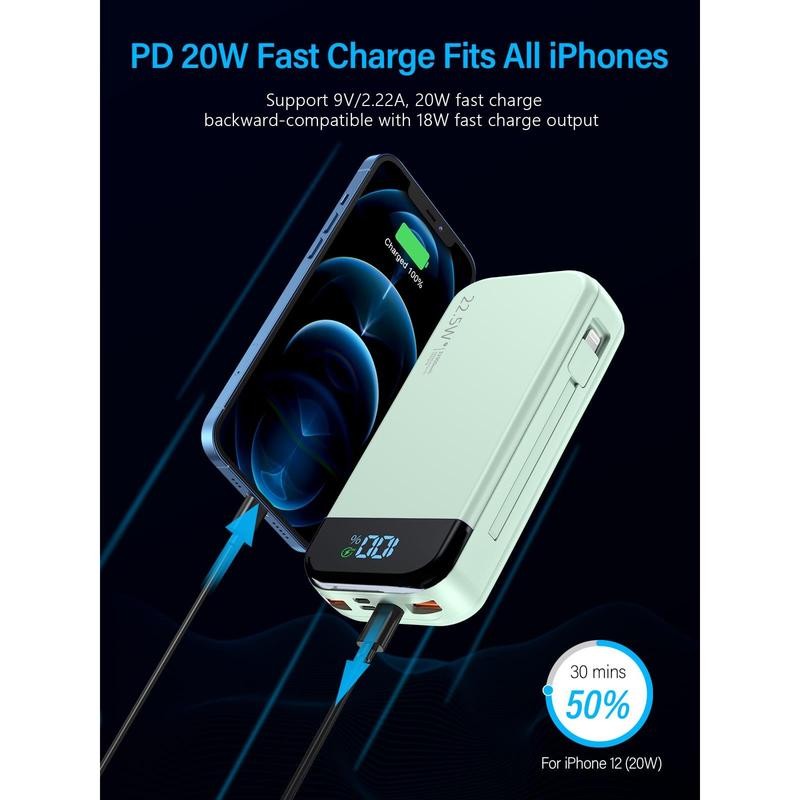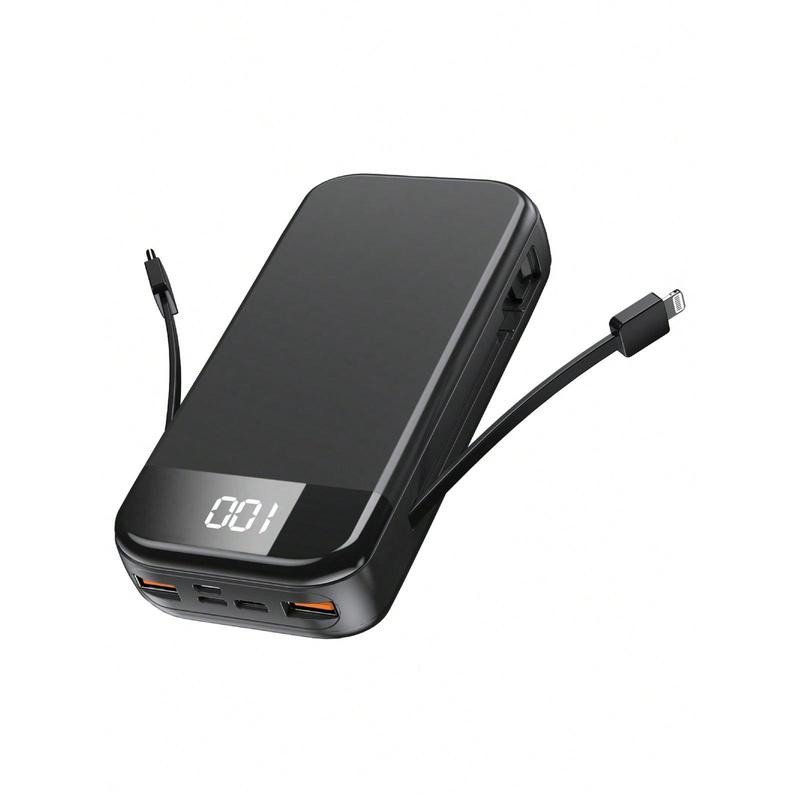 Portable Charger 32000mAh, 22.5W QC 3.0 PD 20W Smart LED Display Fast Charging Built In Cables MFi Certified Power Bank, External Battery Pack Charge 5 Devices Compatible With Cellphones - Color: Black, Battery Ca: 32000 mAh