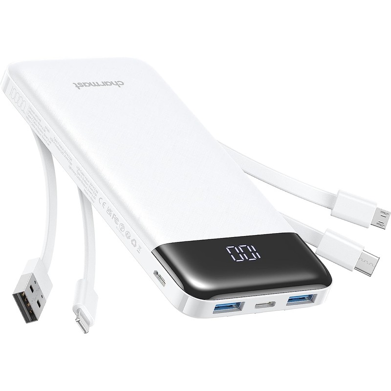 Charmast Slim 10400mAh 6 Outputs Portable Charger built in 4 Cables (3 output cable + recharging cable)