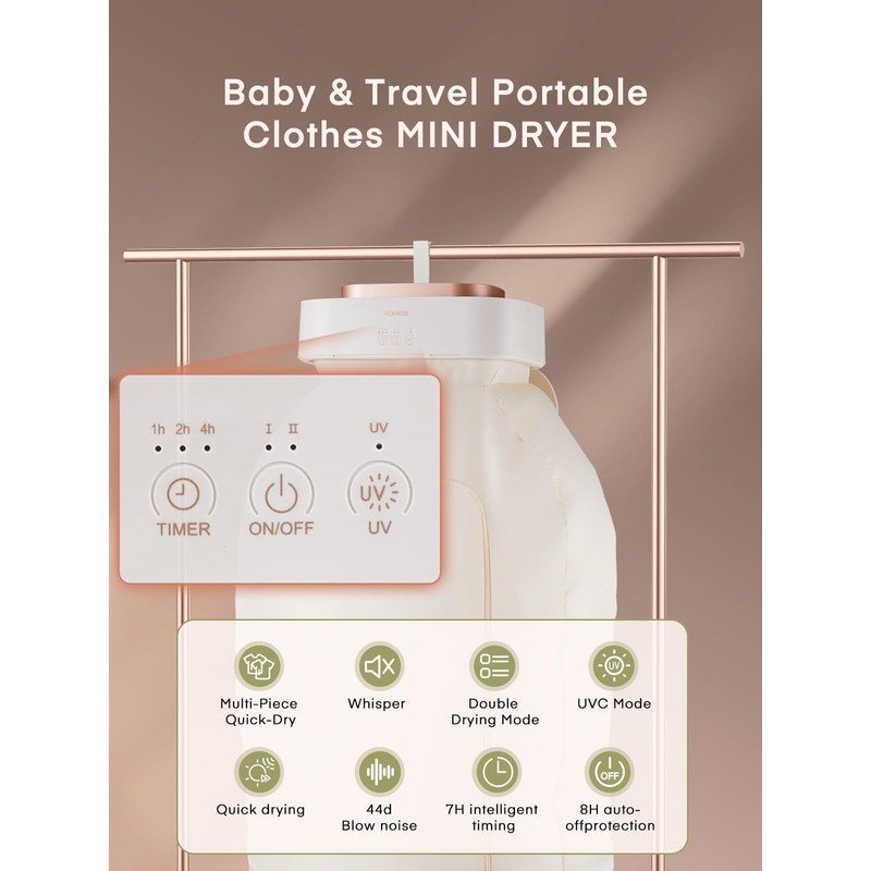 - 【Quiet And Timer Functionality】Say goodbye to noisy drying cycles with the portable laundry dryer. It operates whisper-quietly, allowing you to dry clothes peacefully without disrupting your surroundings. Clothes Dryer features a built-in timer. You can easily set the desired drying duration to suit your needs. Set a timer for up to 8 hours and turn it off automatically when the time is up. What You Get: 1*portable dryer, 1*fabric cover, 1*manual.