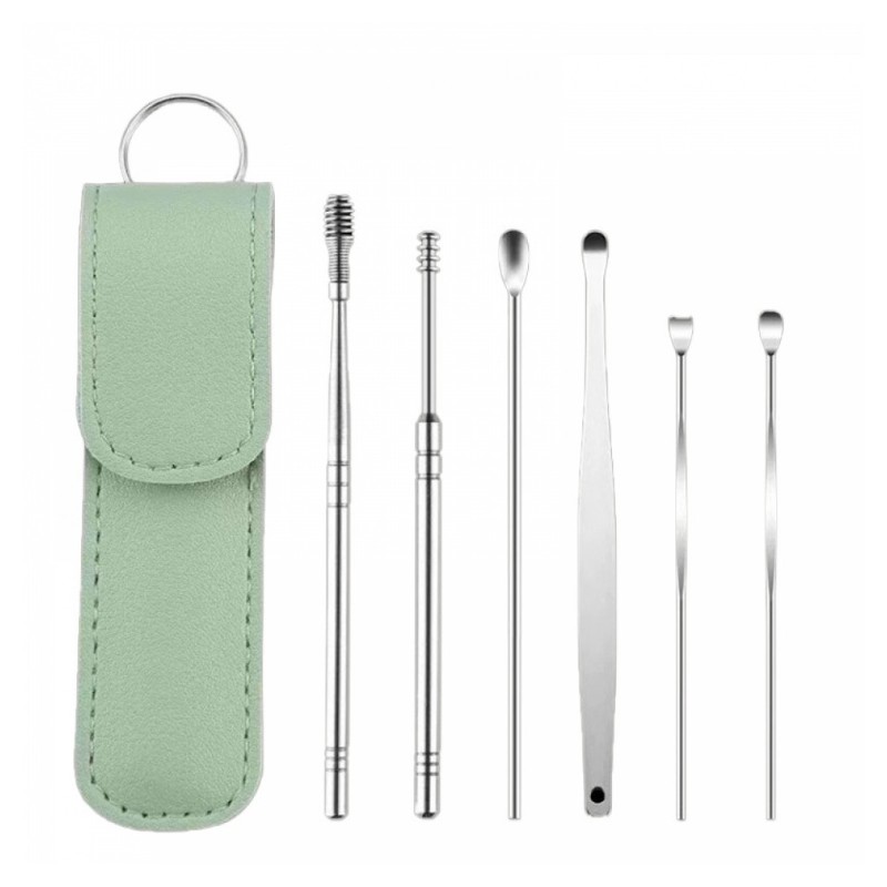 Portable Deluxe 6-Piece Ear Pick Set Green 6ea