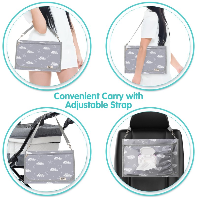 PHOEBUS BABY Portable Diaper Changing Pad - Travel Waterproof Baby Changing Mat with Shoulder Strap - Foldable Diaper Changing Station with Wipes Pocket, Bags for Carrying Babies' Accessories