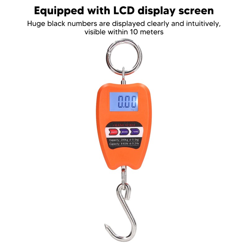 Portable Digital Hanging Scale Accurate 200kg Load Bearing Multifunctional Handheld Mini Scale with LCD Screen for, Hunting, Fishing, Workshop, Home