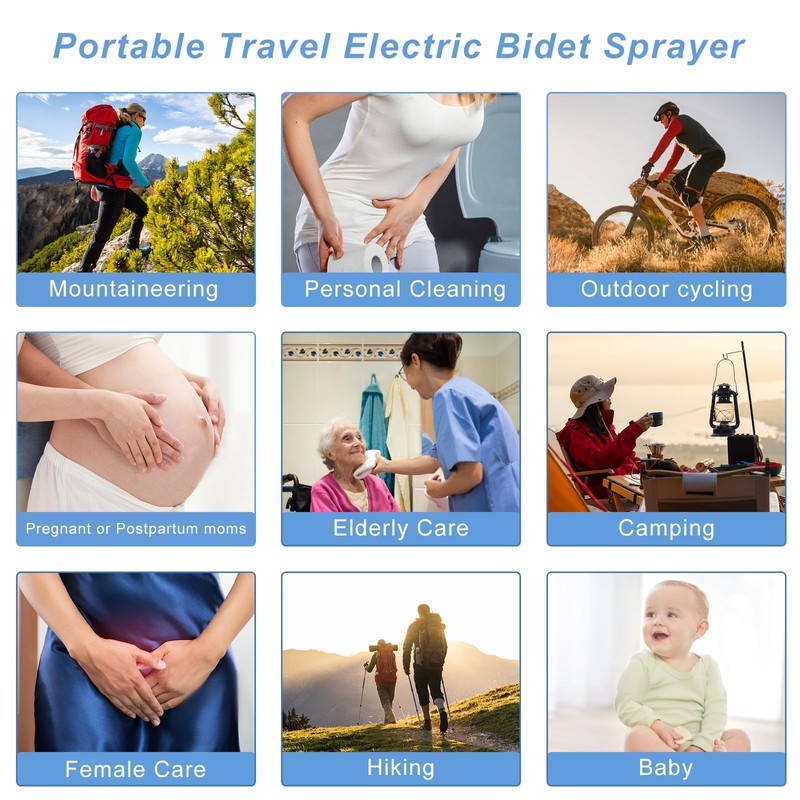 - [Multi Purpose Integration ] The bidet can be used as an effective tool for daily cleaning and care of babies, professionals, women, pregnant women, and the elderly; It is also suitable for vacation, camping, travel, outdoor activities, etc; It is also very suitable for people living in apartments, renting houses, and on business trips (compact, compressible, and easy to carry).