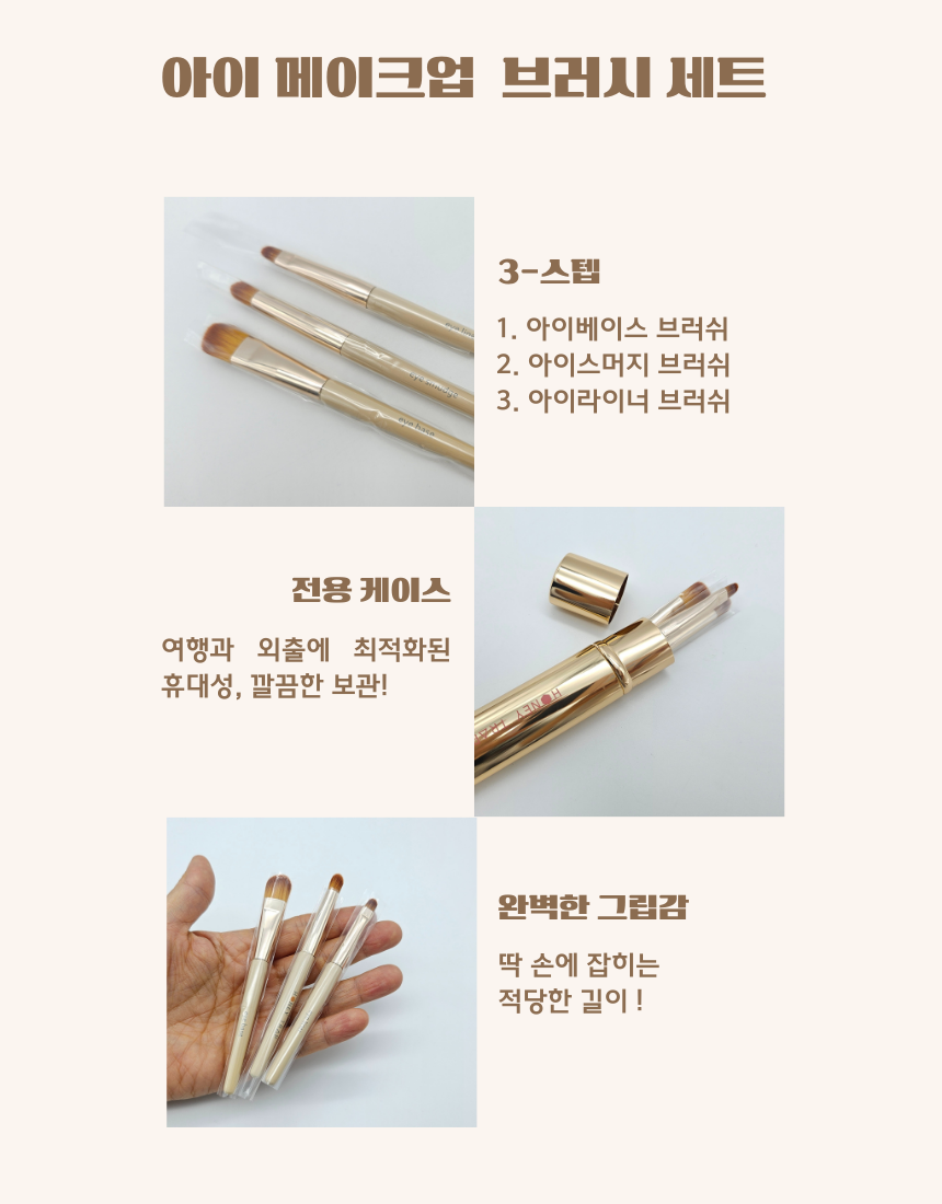 - Feature: Eye Base Brush, Eye Smudge Brush, Eyeliner Brush