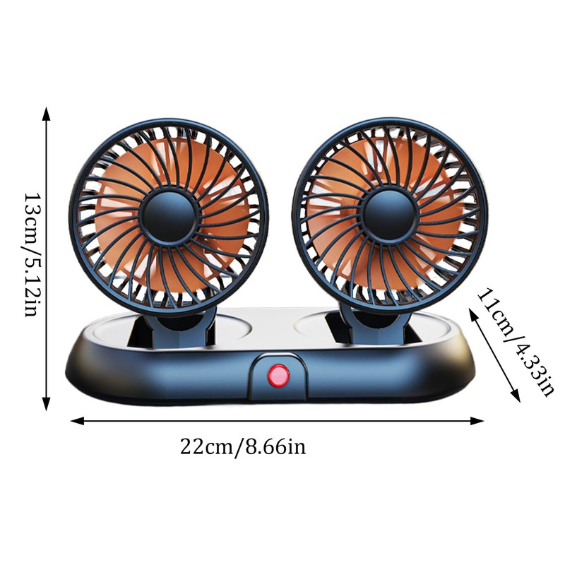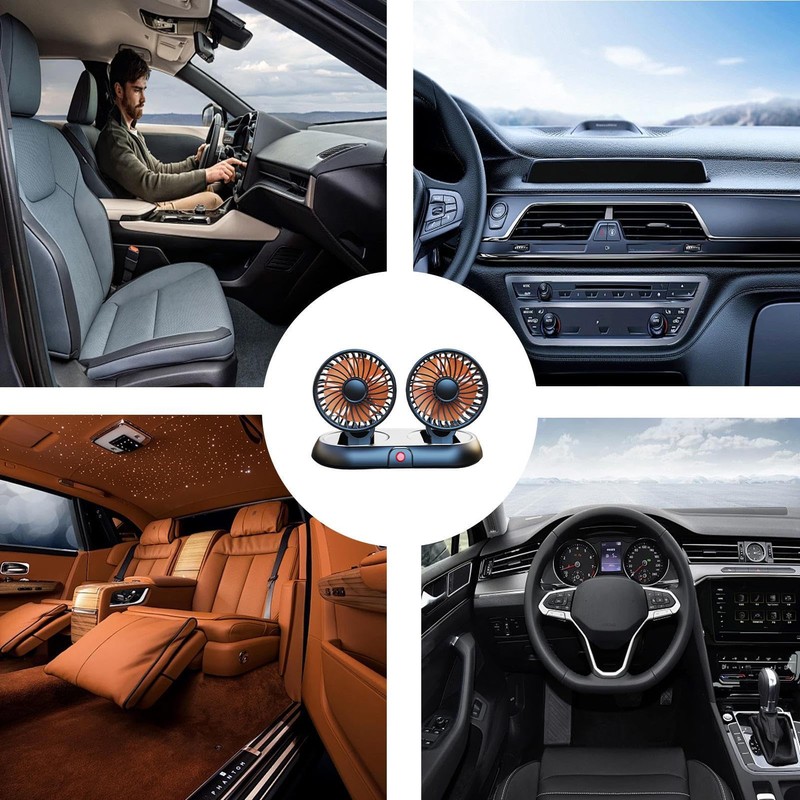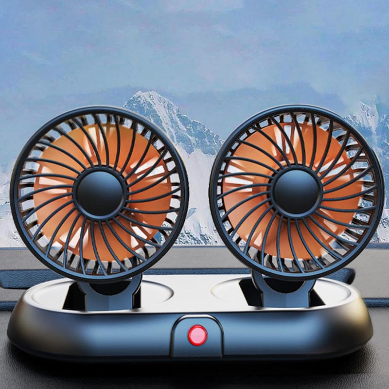 Portable Fan for Car, Auto Double Head Cooler for Dashboard, Double-Head Powerful Auto Fan Low Noise 3 Speeds for Vehicle Dashboard