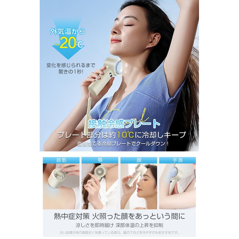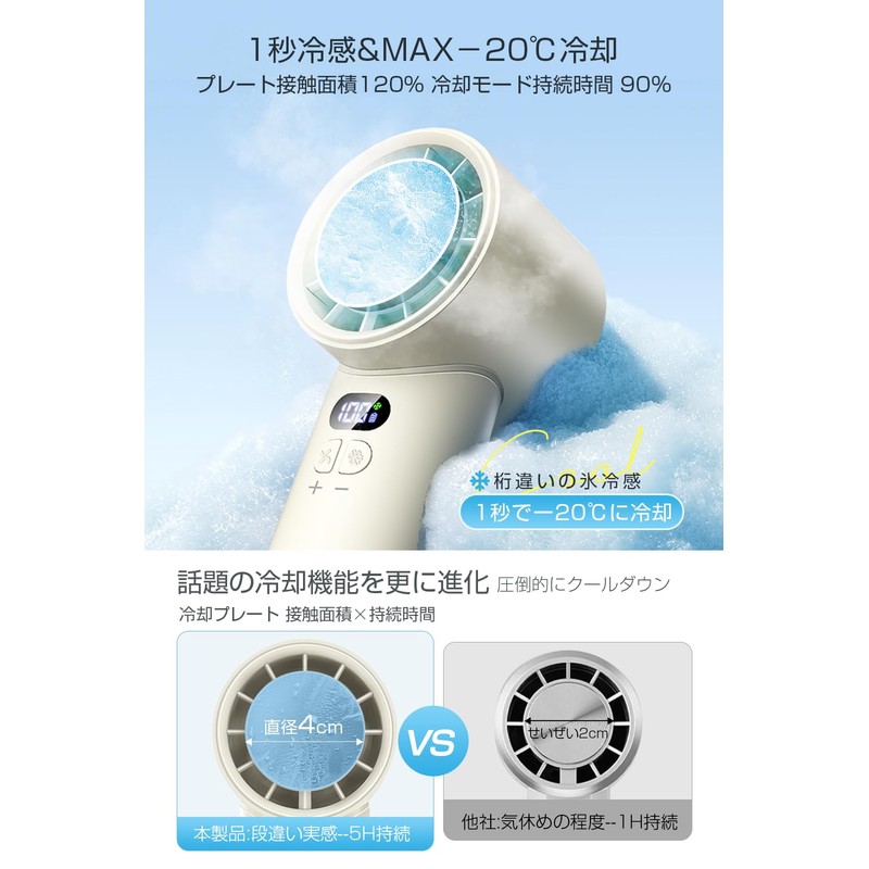 - (1 Second Instant Cooling Fan with Blower and Cooling) Equipped with a cooling feature, press the switch to enter cooling mode when the fan is blown, and the ice cold plate can be placed on your cheeks, forehead, wrist, neck, etc. Instantly cools down your burning skin and lowers your body temperature up to 44°F (20°C) from the outside temperature to reduce discomfort caused by sweat, etc., and this cooling fan is perfect for preventing heat and heatstroke that is not sufficient by air just enough