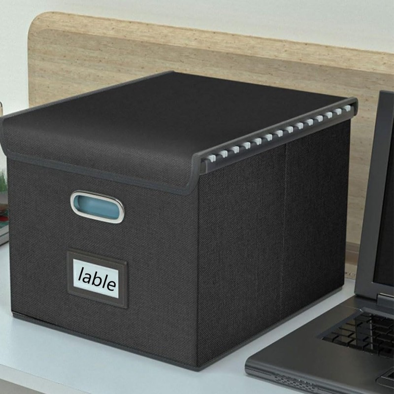 Portable File Organizer Box with Lid,File Management Box,Foldable Linen Hangi...