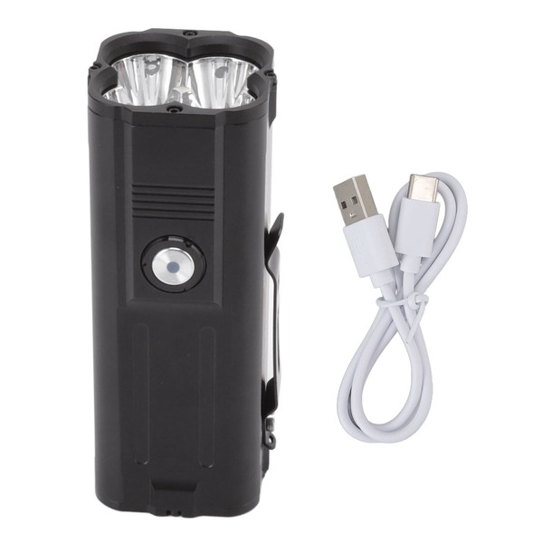 1、Temp Control Module: Built in high accuracy temperature control module, which can automatically adjust the brightness output according to the working state and outside temperature. 2、With Lithium Battery: Built in 12800mAh large capacity rechargeable lithium battery, energy saving and environmental protection, no need to replace the battery frequently. 3、USB Charging: With USB output and input port, convenient to charge the flashlight, and can charge the mobile phone and camera in an emergency (included Type C cable). 4、Multiple Light Mode: Single click to adjust low brightness, medium brightness and high brightness; double click to adjust super brightness, strobe and SOS, with 8000LM maximum brightness. 5、IPX5 Waterproof: The flashlight is IPX5 waterproof, it can still illuminate the road for you in harsh environments (not directly immersed in water), suitable for outdoor use.