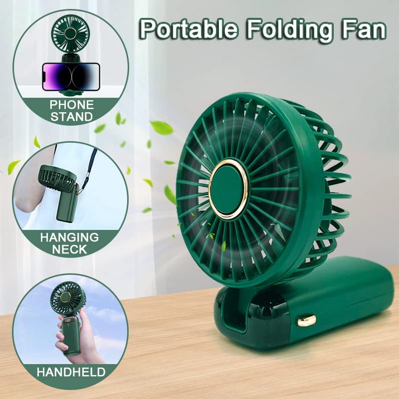 Portable Foldable Handheld Fan, 3000 mAh USB Rechargeable Fan with LED Display, 5 Speeds, Mini Personal Cooling Fan with Lanyard for Travel Office Outdoor Home