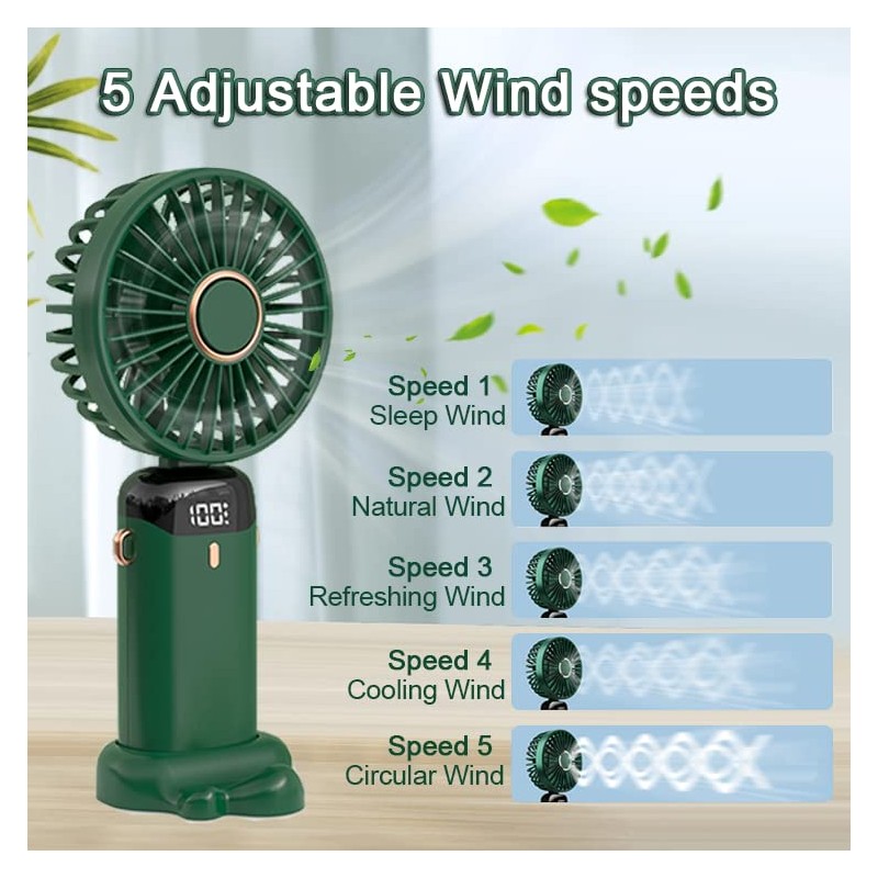 - 【Five Speed】Portable Fan with 5 Speed adjustable wind speed, Low wind,medium wind,high wind,strong wind,circulation wind. One key design to provide different wind speeds,Just press the power button repeatedly,Meet different cooling requirements in summer. Long press 3 seconds to close directly.