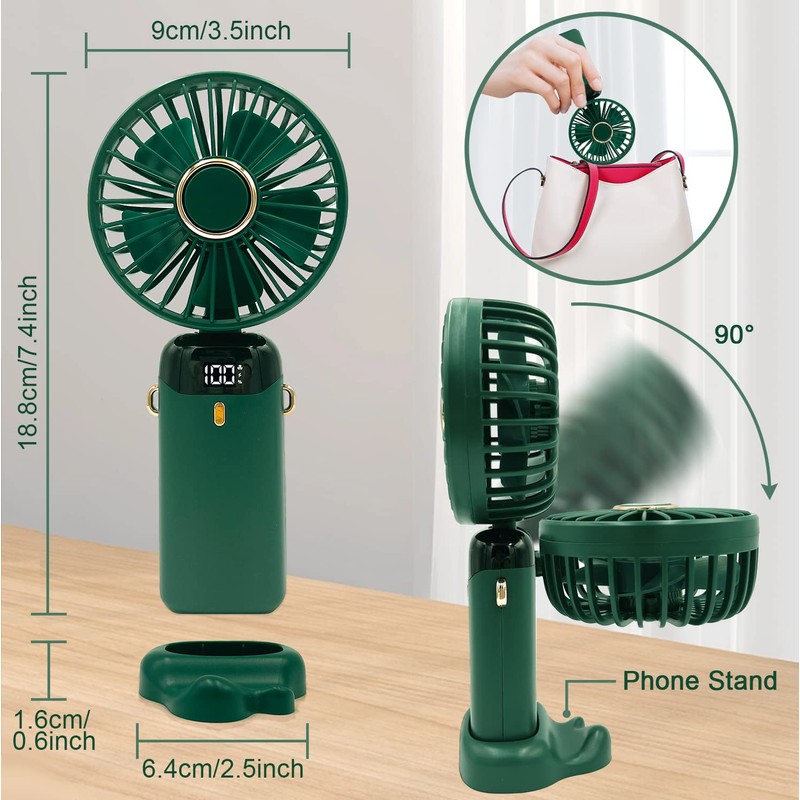 - 【Super Long Endurance】Handheld Fan upgrades for Long Endurance,Built-in 3000 mAh lithium battery,Battery life increased by 2 times, Can work 8-19 hours,(depend on different speeds).USB Charging,Dual energy drive,Small volumes store large amounts of energy.
