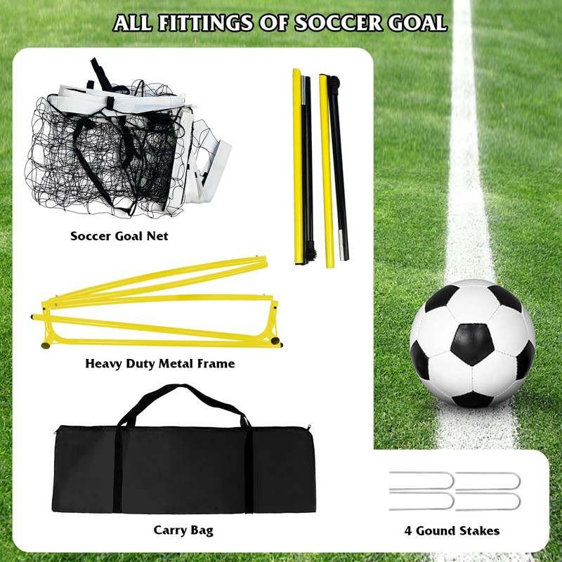 - 【Easy Carry & Assemble】The soccer goal with carry bag is easy to storage and transport. You can take it to backyard, park or other places and assemble in 5 minutes.