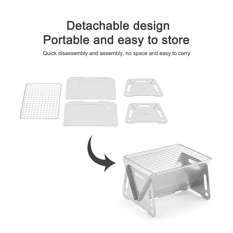 - [Made of Stainless Steel]The portable grill is made of practical stainless steel. Rustproof, scratch-resistant, corrosion-resistant and resistant to deformation, it can be used for a long time