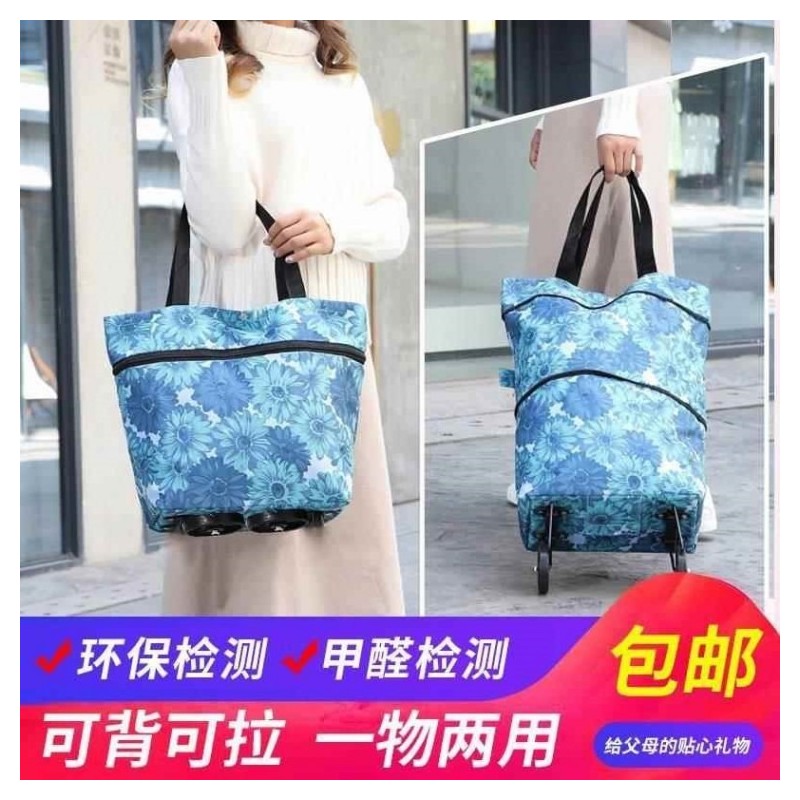 Portable Folding Shopping Cart & Trailer (Various Designs) Blue Chrysanthemum 5ea