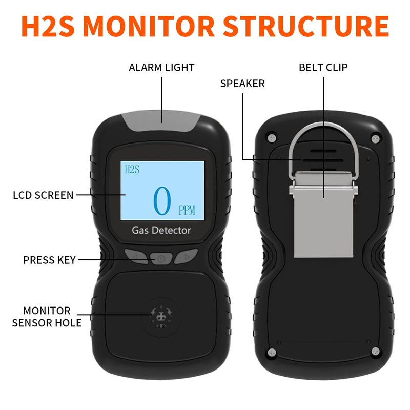 - 【Portable H2S Monitor 】This compact and lightweight H₂S gas detector features a convenient clip for easy attachment. Constructed with high-strength ABS material,Featuring IP65 protection, it offers water, dust, and explosion resistance, making it suitable for various environments.