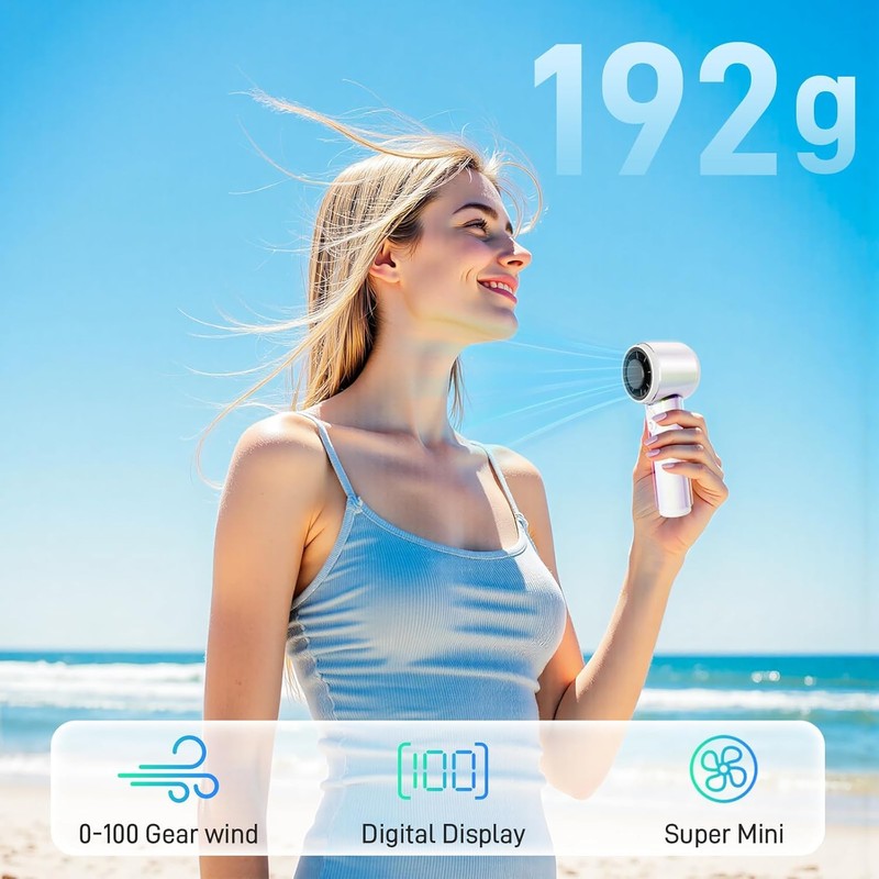 Portable Handheld Fan, 14000RPM High Speed Brushless Motor, 4 Speed Settings, Digital Display, 10 Hour Battery, White