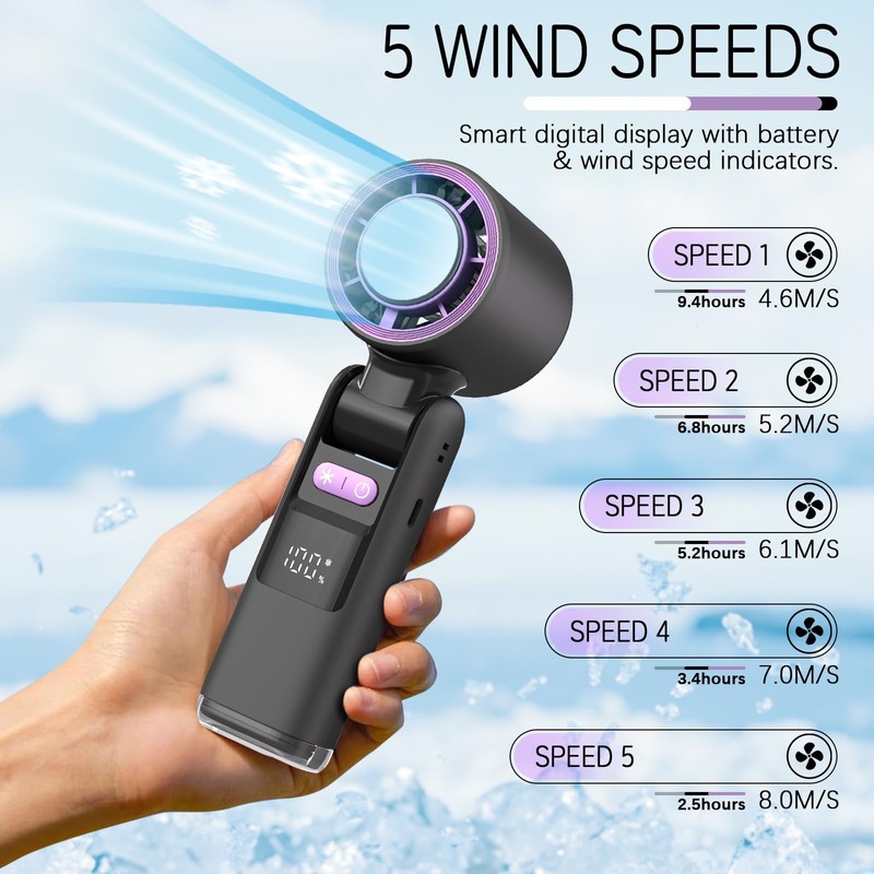 - Powerful handheld fan: our handheld fan is equipped with a durable motor, the maximum speed is 10 times that of ordinary portable fans, its power is enough to produce strong wind, the turbine design can produce stronger and more concentrated wind