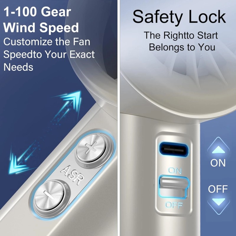 Portable Handheld Fan, Speed (1-100) Adjustable Turbo Personal, 4000mAh Battery