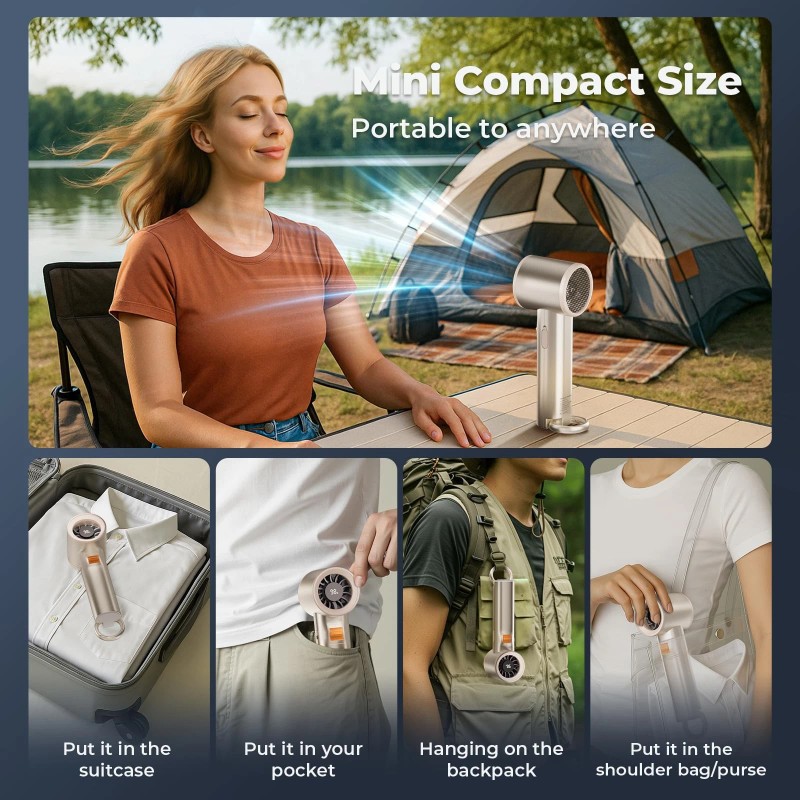 portable turbo fan is small and portable for handheld and desk , perfect for tarvel,camping ,outdoor activities or any summer actvities.as a gift for women ,men or freinds.