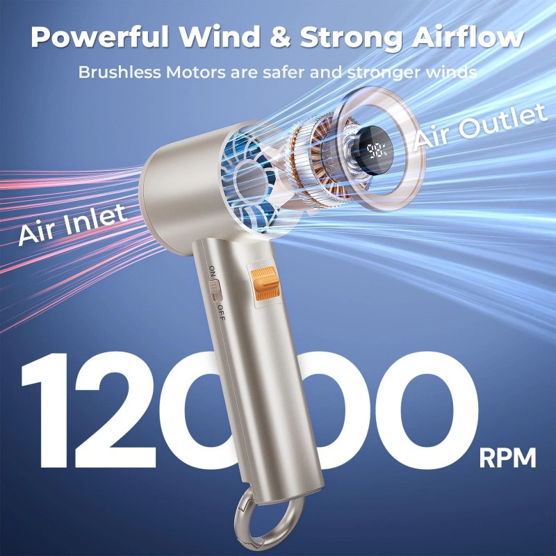 ❄Powerful Wind & Excellent Cooling - Powerful portable handheld fan adopts turbo structure design,ensuring that wind and airflow is more powerful and strong than ordinary handheld fans.The cool wind is stronger when the portable fan is running highest wind gear. The turbo handheld fan is providing a maximum wind speed of up to 7 m/s. 12000 RPM. Enjoying the maximum cooling wind