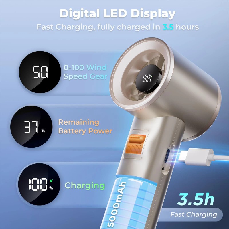 ❄Digital LED Display - Powerful little personal fan can be handheld or put on the desk. the portable fan for travel is campact and little,The fan is equipped with digital led display,which can show the current wind speed gear and remaining battery power,arrange charging in advance when the battery percentage displays too low.Fully charged for 3.5 hours