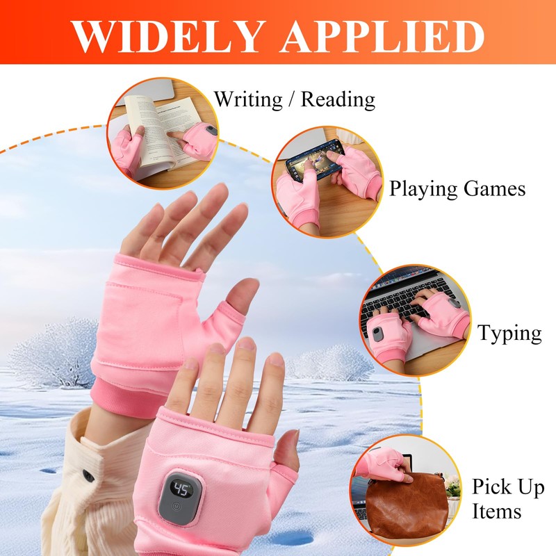- 【Portable Heating Gloves】Fingerless heated gloves feature smart thermostatic technology that delivers consistent, soothing heat and warming your entire hand for optimal comfort! Perfect for activities such as typing, writing, photography, using touch screens, cycling, driving, shooting, fishing, and more