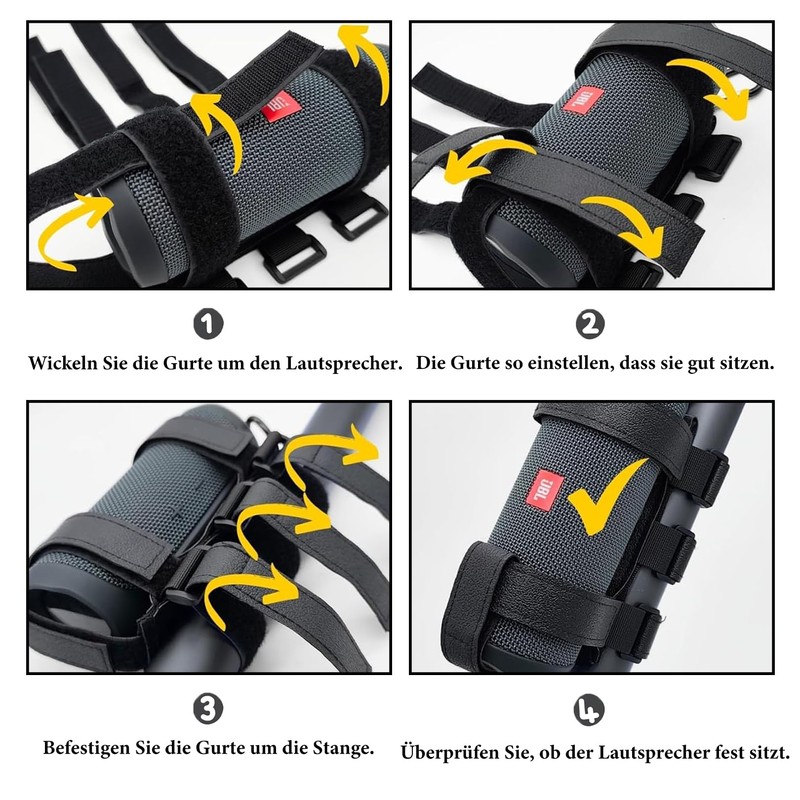 Portable holder for wireless Bluetooth speaker, adjustable strap attachment, compatible with JBL Charge 5, JBL Flip 6, JBL Charge 6, for bicycles and golf carts