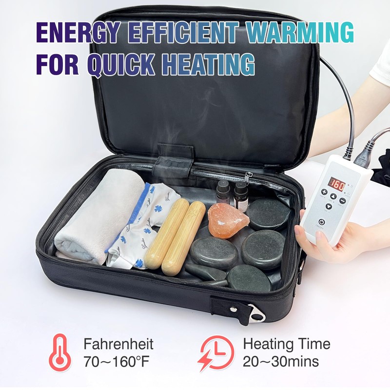 Portable Hot Stone Warmer Electric Spa Hot Stones Heater Dry Towel Warmer Digital Controller Heating Bag (Black)