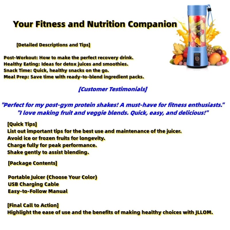 JLLOM Electric Portable Blender